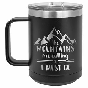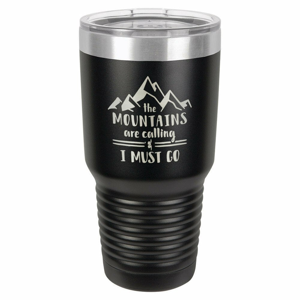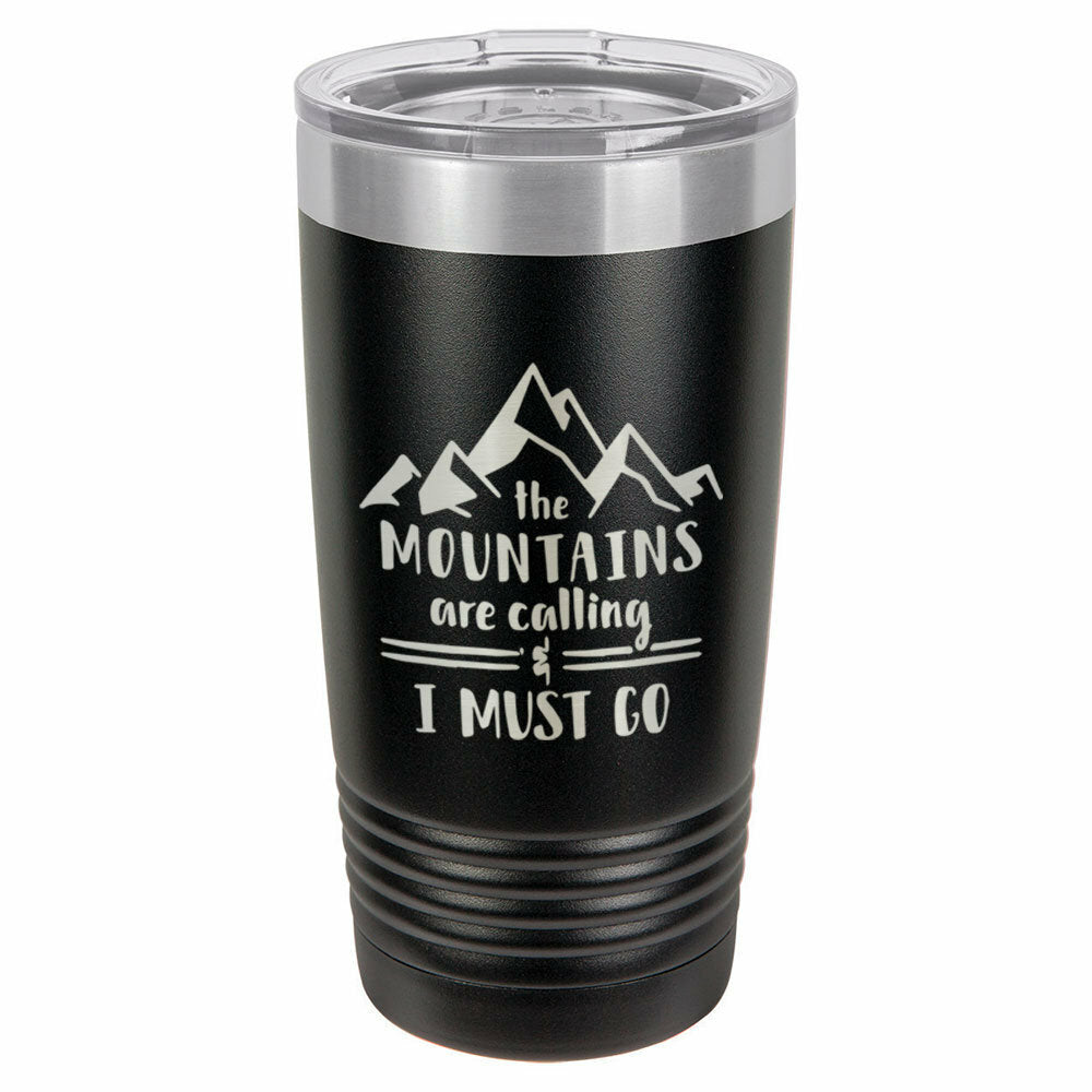 Our Mountains Are Calling And I Must Go Drink Tumbler collection comes in a variety of sizes. The tumblers will keep your drink cold/hot for hours. The details below apply to all sized drink tumblers. You can find size specific information below that.